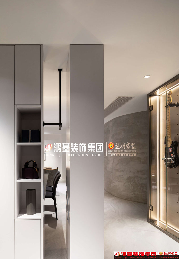 玄關(guān):玄關(guān)集合了日常歸家和出門的必要功能,可隨手放包和手中物品、掛2件外套、裝飾花器,餐廳的空間也在玄關(guān)處若隱若現(xiàn),增加視覺延伸感。